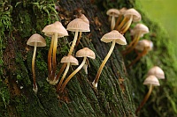 Aderblättriger Schwindling Buchen-Adernzähling Helmlinge im Baumstumpf