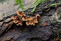 Erdstern Schwefelporling Porling mit Gutationstropfen