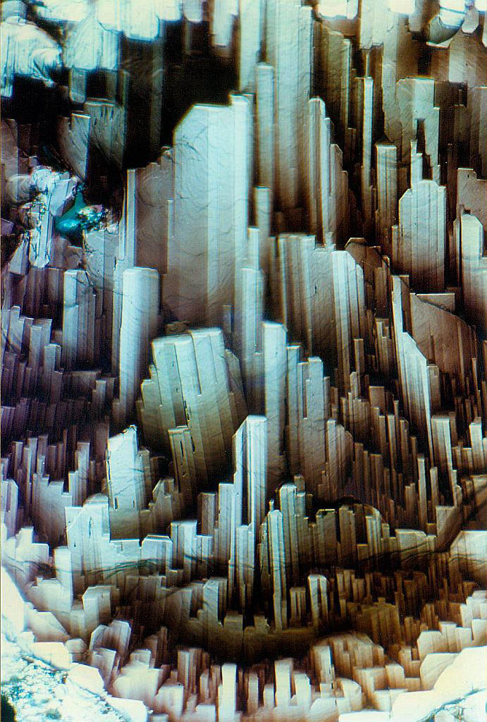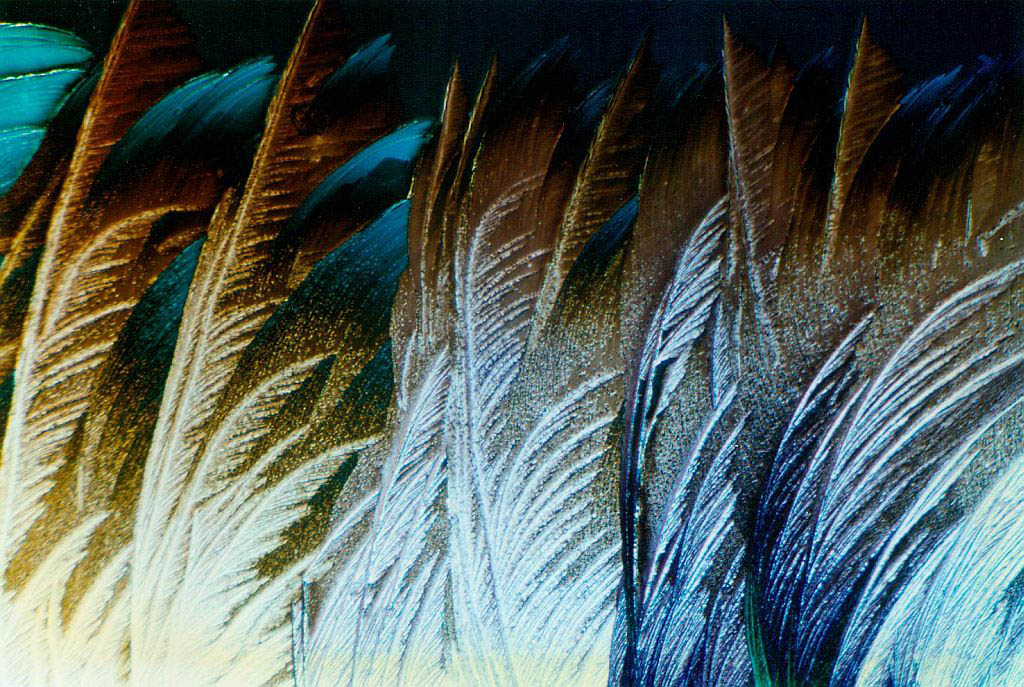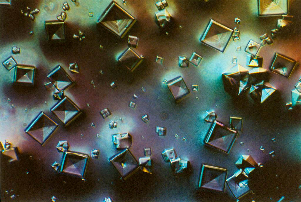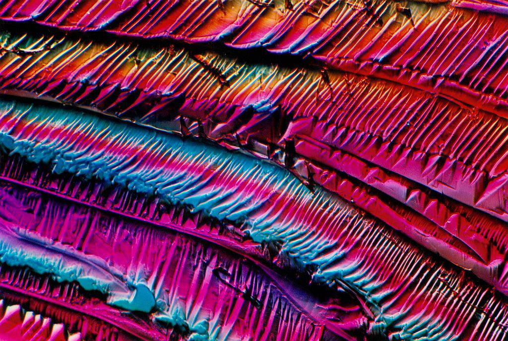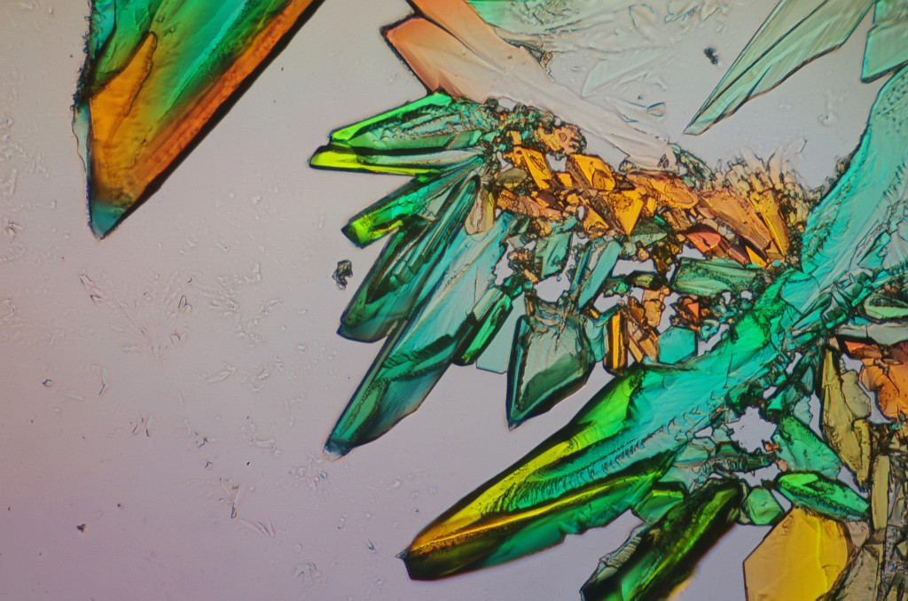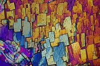 Dem menschlichen Auge sind bestimmte Grenzen gesetzt, was beispielsweise das Erkennen von Kleinstobjekten betrifft. Mit Hilfe von Lupen und Mikroskopen können wir trotzdem diese Mikrowelten bewundern und erforschen. Wir staunen über den Detailreichtum und die Formenvielfalt, die selbst in den kleinsten Mikrostrukturen noch zu finden sind. Alle diese Aufnahmen wurden mit Hilfe eines Lichtmikroskops gemacht. Es handelt sich um auskristallisierte Lösungen verschiedener Substanzen, mikroskopiert im polarisierten Licht. Mehr zur Vorgehensweise unter Technik.